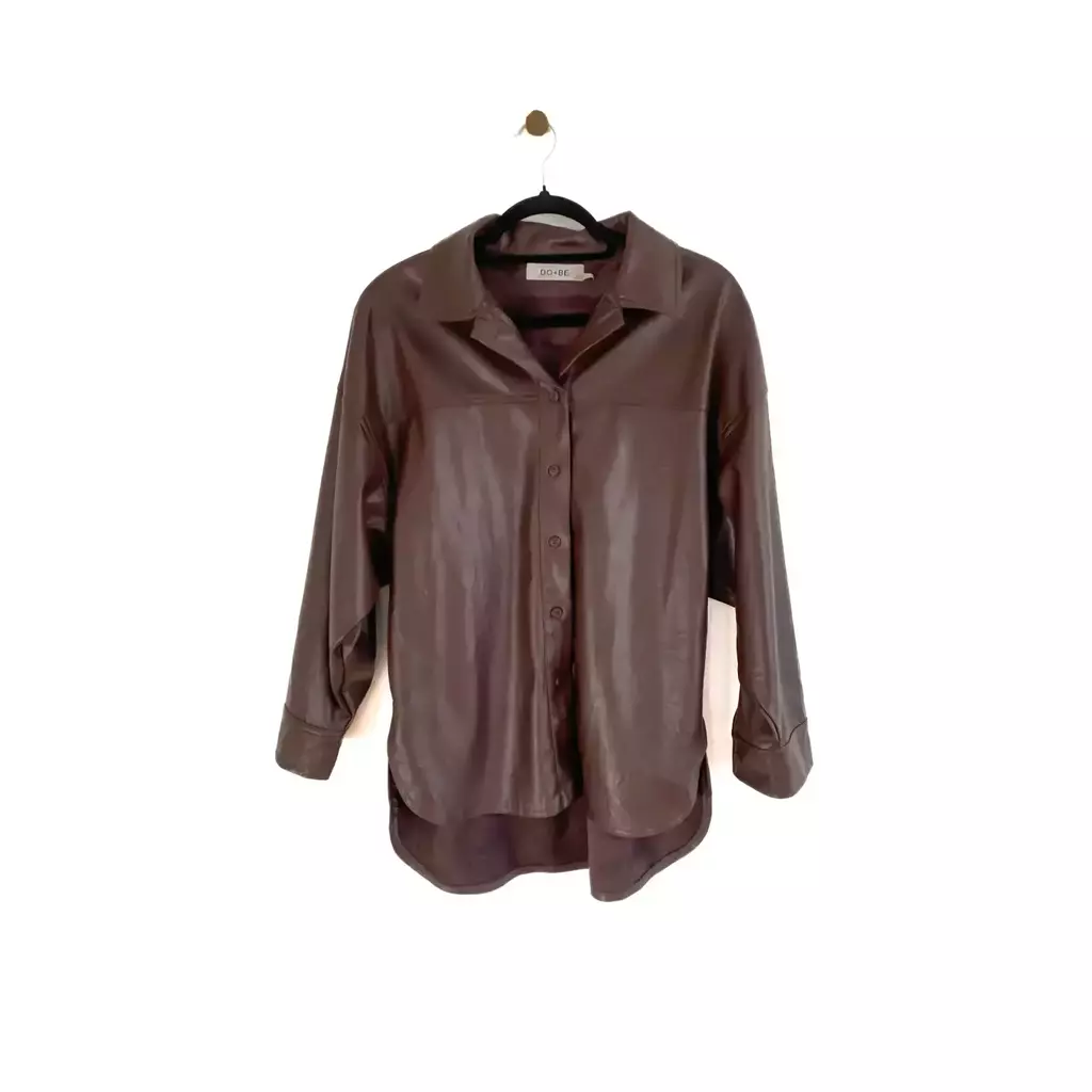 Campera de cuerina con corte tipo camisa. Estilo y mucha presencia para tu look. Marrón con detalle muy chico: oportunidad.